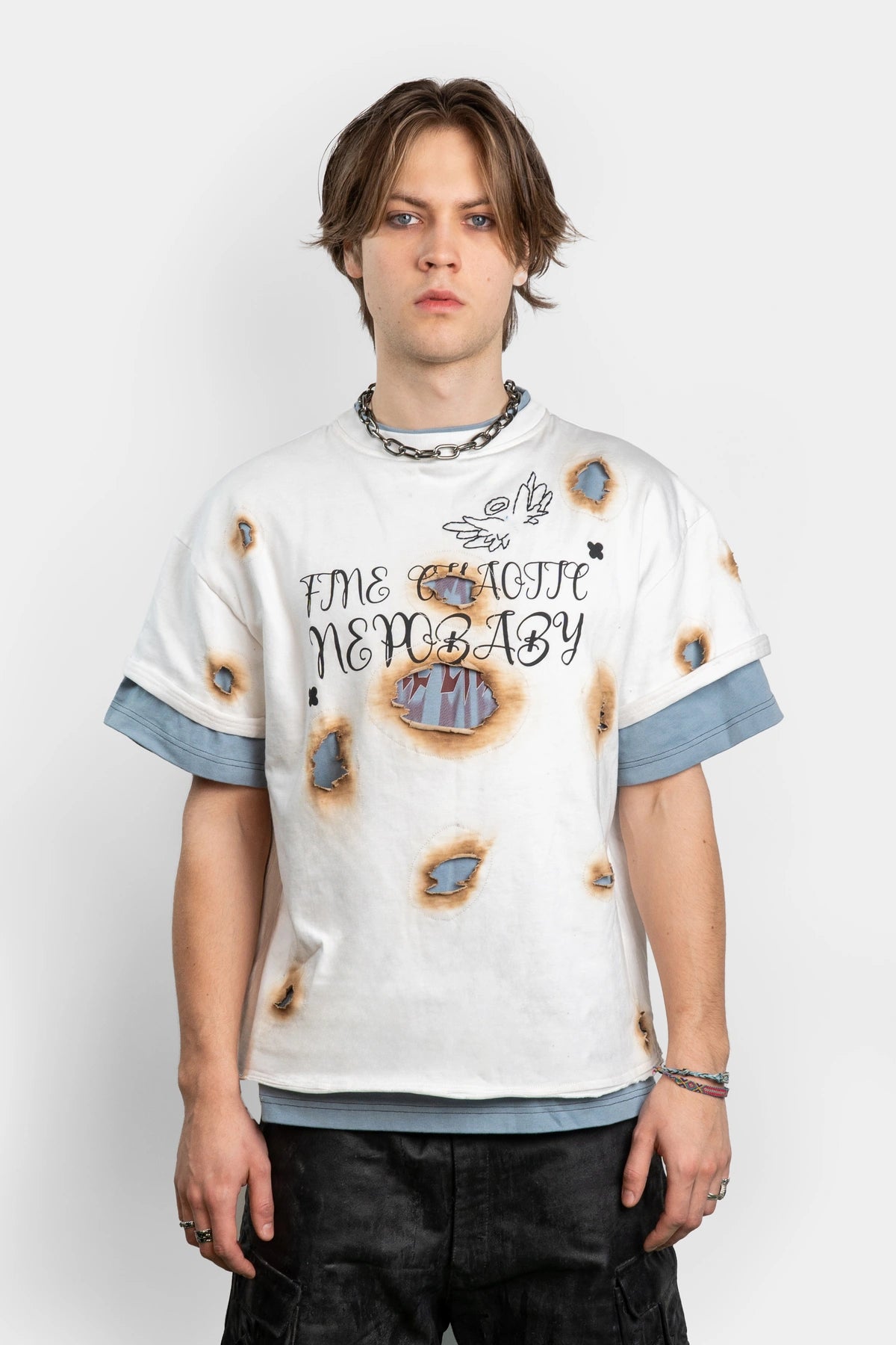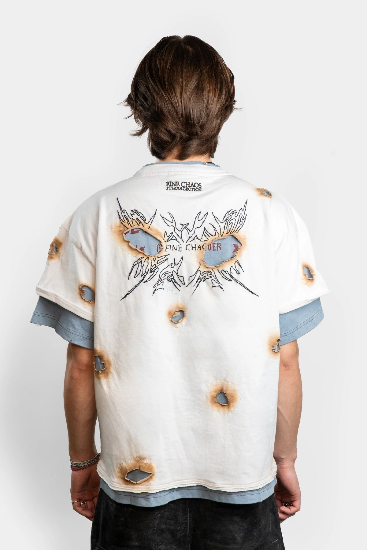 1 of 1 Double Layered T-Shirt from the FINE CHAOS x Proper Collection, uniquely hand-treated in the FINE CHAOS Atelier. Made in collaboration with Proper
