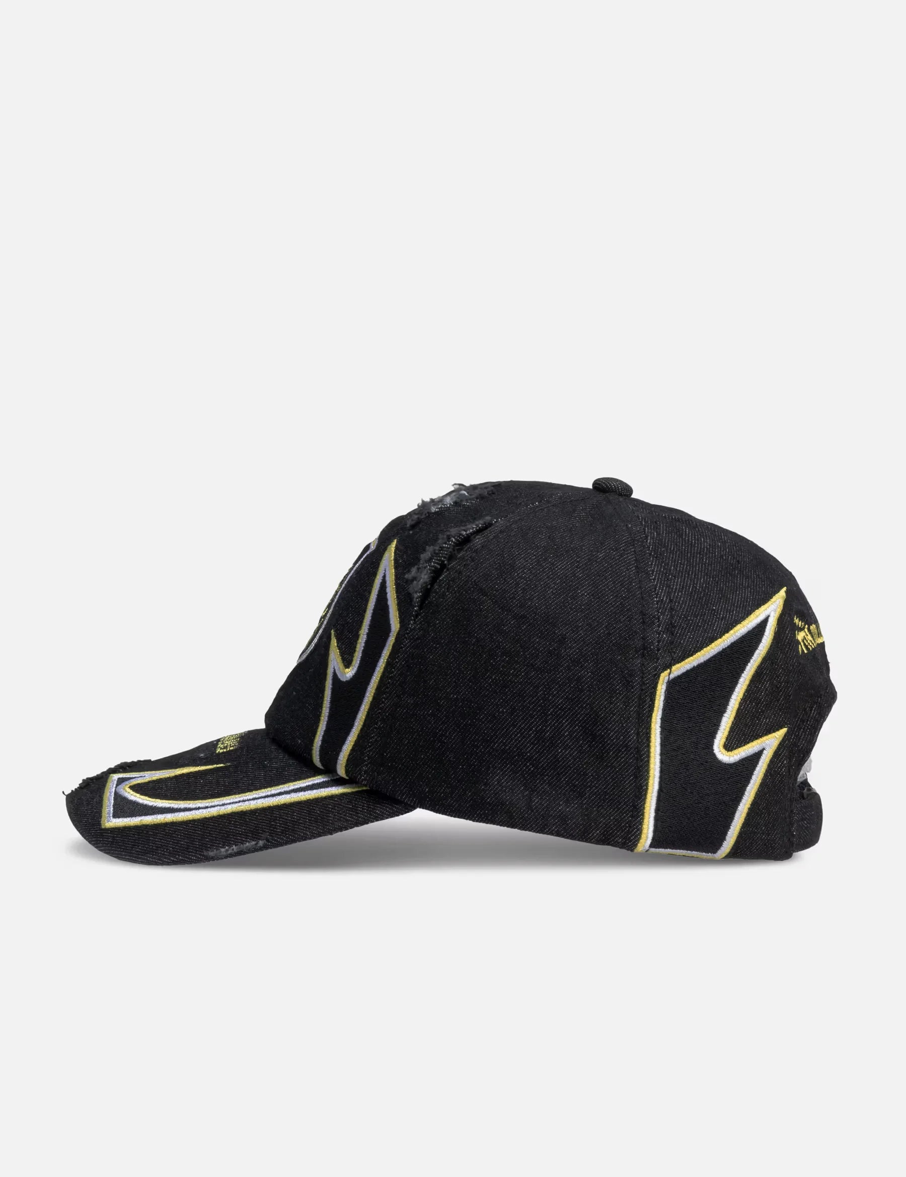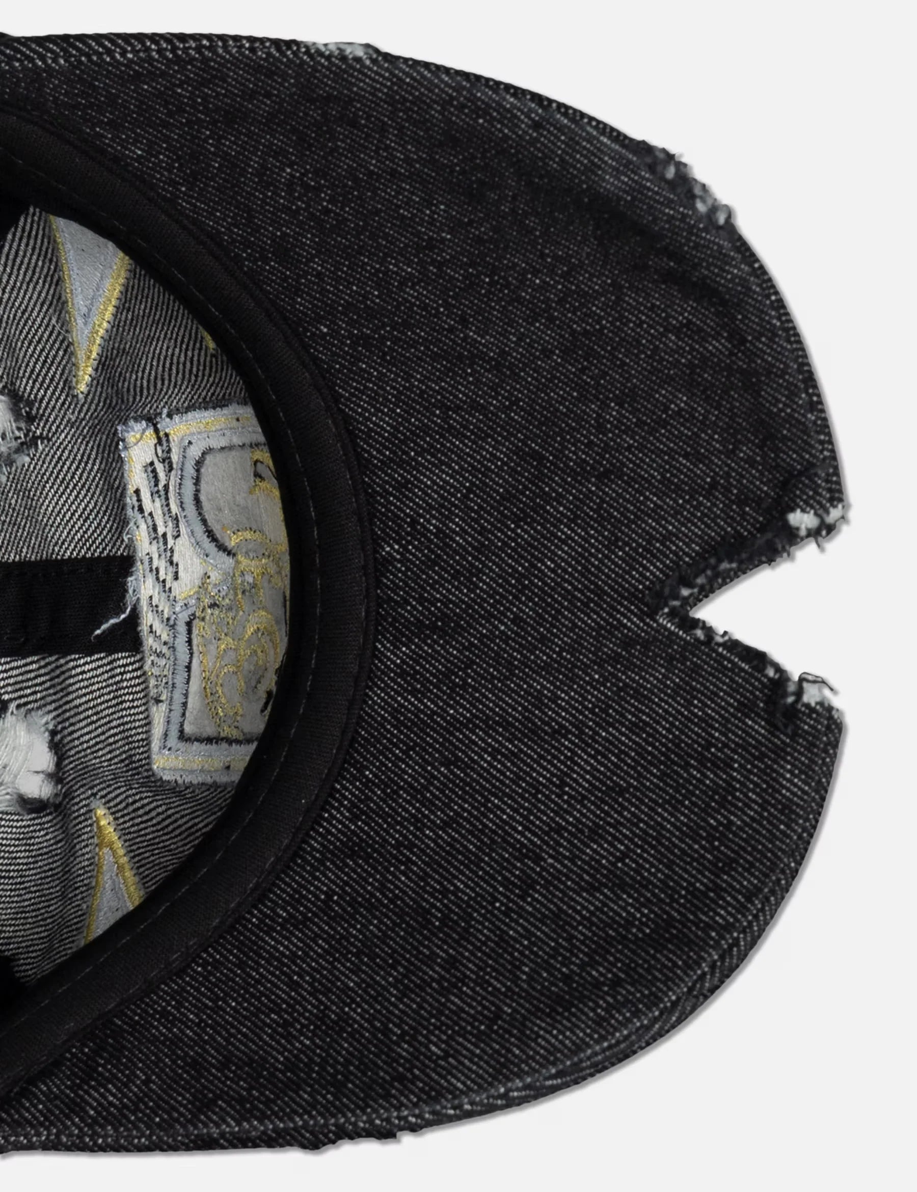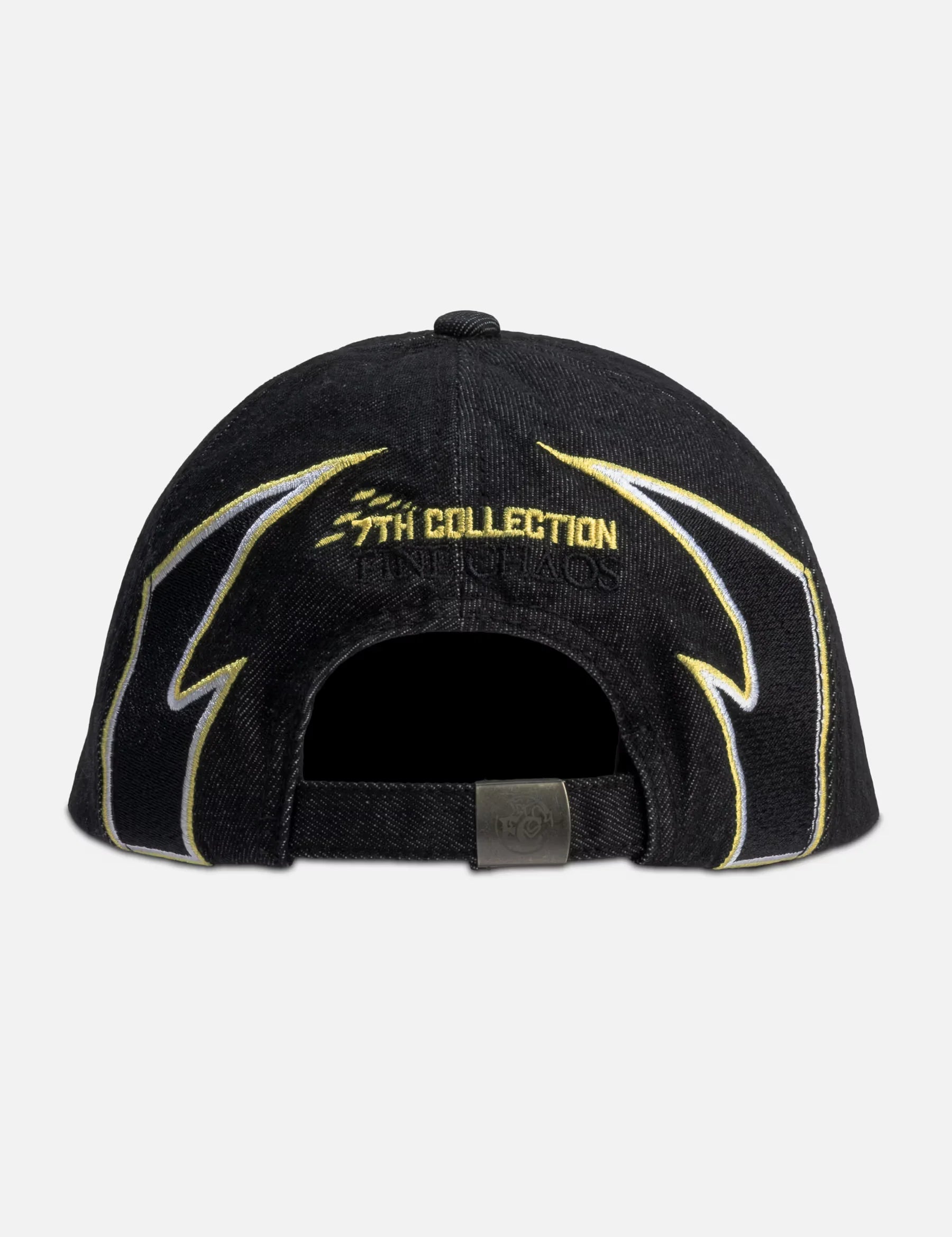 Denim cap in organic cotton, featuring embroideries along sides and FC Clasp at back