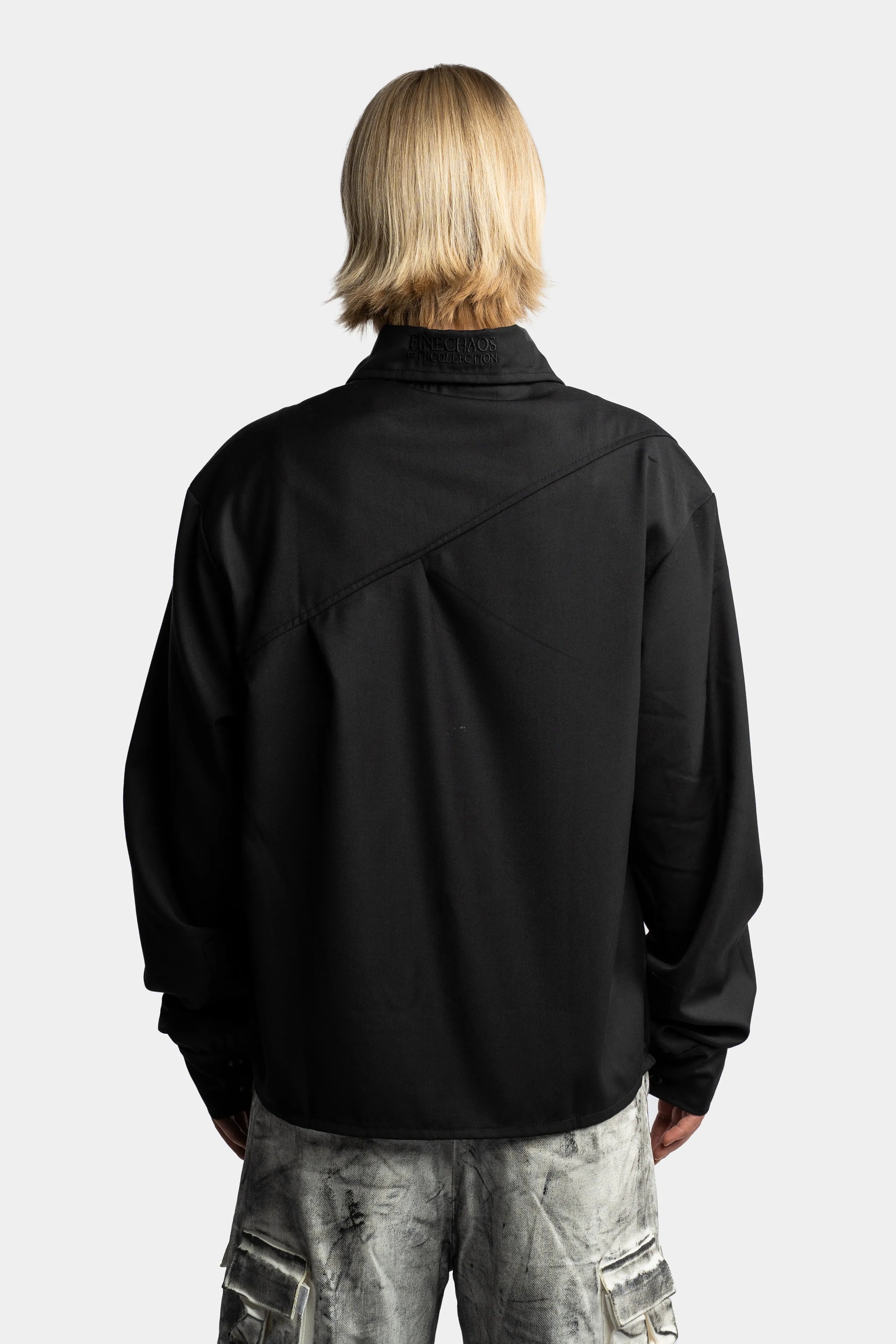 • Asymmetrical shoulder panel at back for a sculptural look