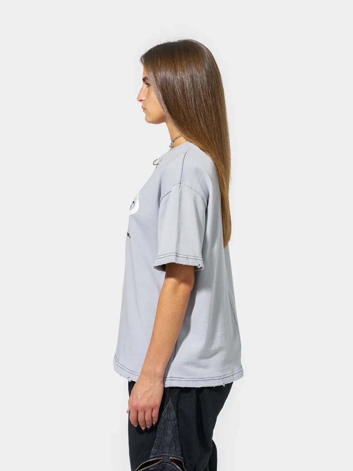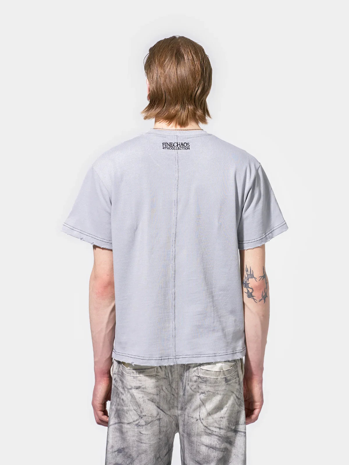 Heavy Light Grey Faded T-Shirt with contrast stitching & slight distress levels, featuring the 'Intellectual' print from The Tale of Contradicting Realities collection